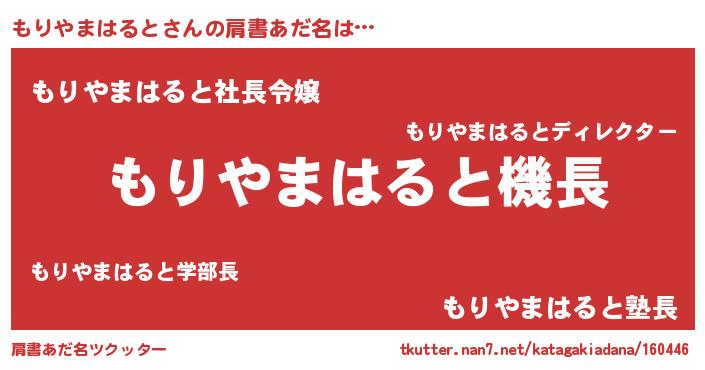 | 胡散臭い通販商品みたいなあだ名 | 『必ず成功する霊験あらたかなお札…その名も「もりやまはると」』 |