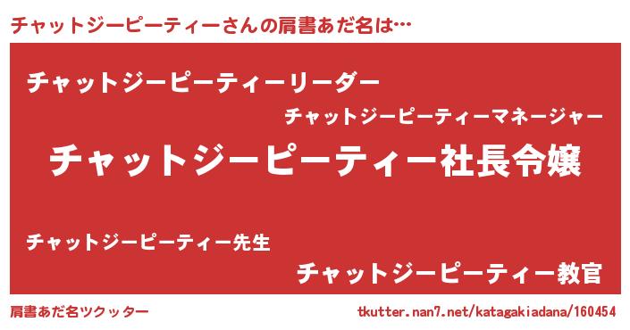 | 欧米人風あだ名 | 『マイケルチャットジーピーティー』 |