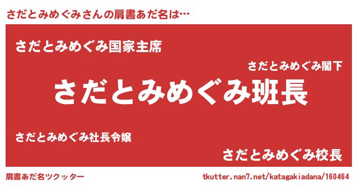 | 男性向けラノベタイトル風あだ名 | 『さだとみめぐみの嫁は女の子じゃないと思った?』 |