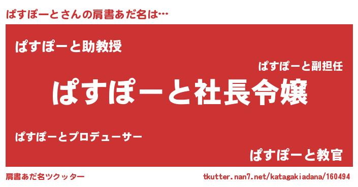 | ヒーロー風カッコイイあだ名 | 『スーパーパスポート』『仮面パスダー』 |