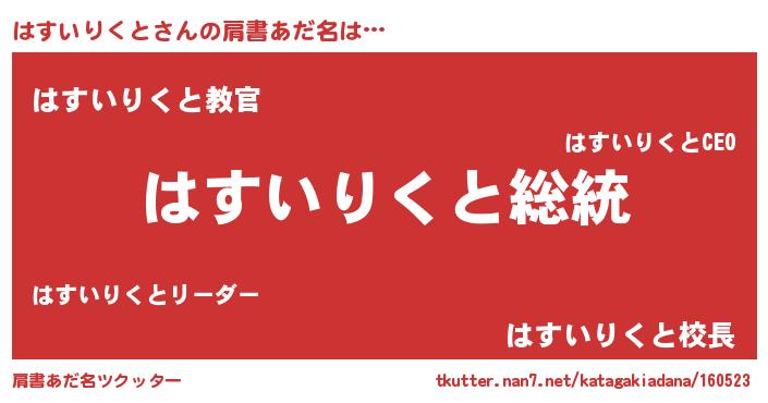 | 女子向けラノベタイトル風あだ名 | 『はすいりくとなんてお断りですっ。』 |