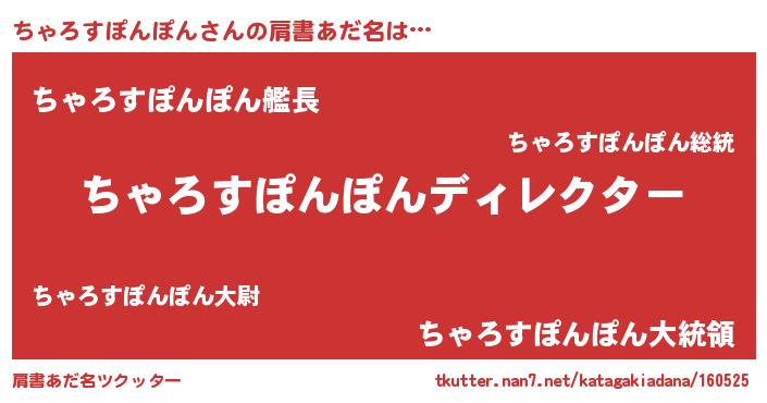 | 男性向けラノベタイトル風あだ名 | 『はたらくちゃろすぽんぽんさま!』 |