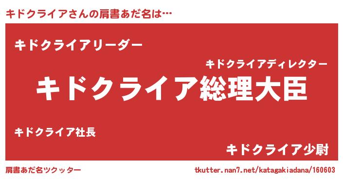 | 自動車の名前っぽいあだ名 | 『キスラー』『キント』『キドティマ』 |