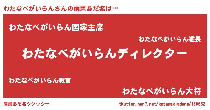 | ポケモン風あだ名 | 『ワタゴンZ』『ワタナダネ』 |