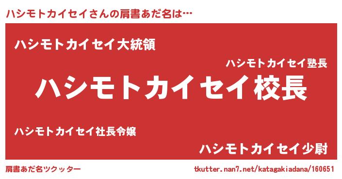 | 意味不明あだ名 | 『永久保存ハシモトカイセイ』 |