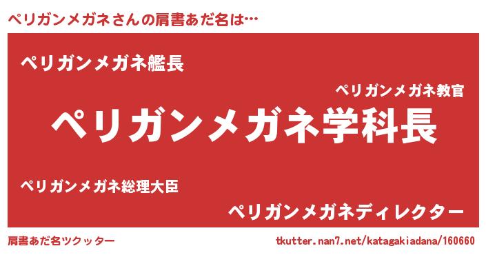 | ヒーロー風カッコイイあだ名 | 『友情の使者ペリガンメガネ』 |
