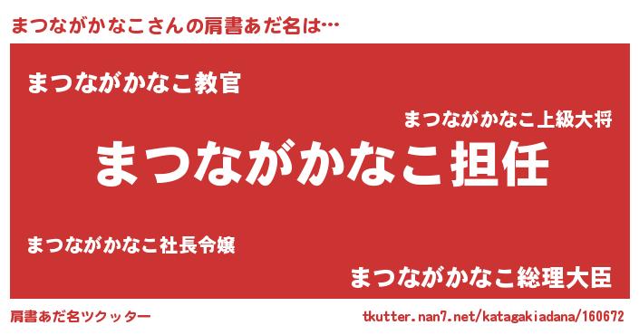 | 女子向けラノベタイトル風あだ名 | 『まつながかなこの契約王妃』 |