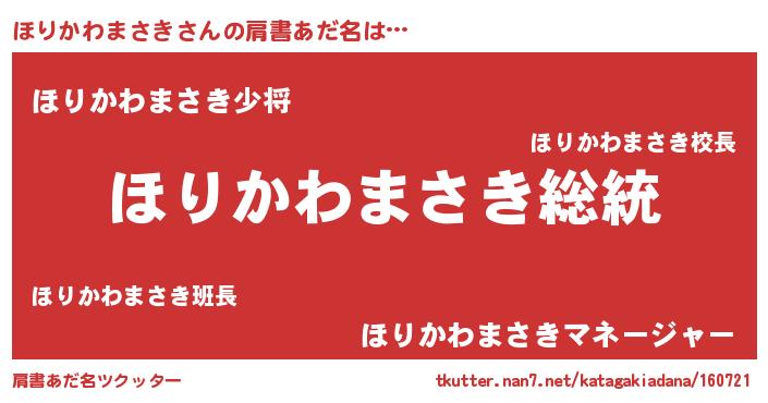 | 女子向けラノベタイトル風あだ名 | 『ほりかわまさきなんてお断りですっ。』 |