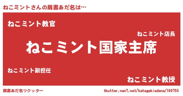 | 伝説のあだ名 | 『秘められし陰陽師ねこミント』 |