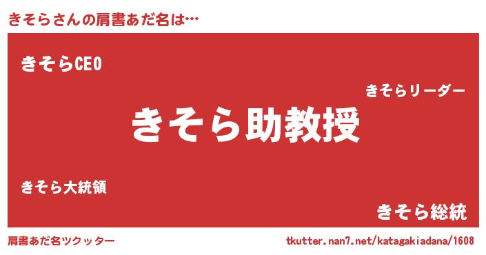 | ヒーロー風カッコイイあだ名 | 『慈愛の使者きそら』『スーパーキソラ』 |