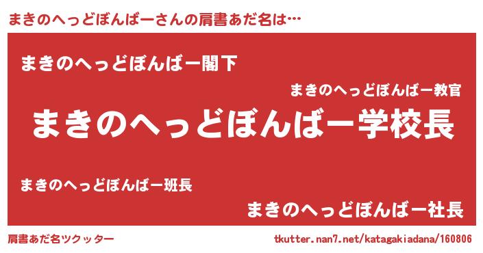 | 男性向けラノベタイトル風あだ名 | 『おまえをオタクにしてやるから、俺をまきのへっどぼんばーにしてくれ! 』 |