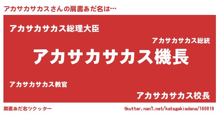 | 男性向けラノベタイトル風あだ名 | 『うちのアカサカサカスが世界を掌握している!』 |