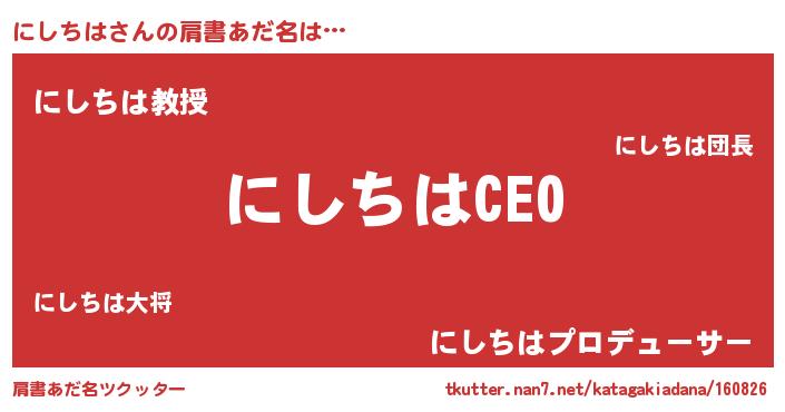 | ピコ太郎風あだ名 | 『ニコ一郎』『ニニ太郎』『ニシ八郎』 |