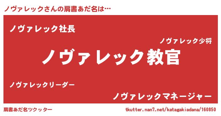 | 男性向けラノベタイトル風あだ名 | 『この素晴らしい世界にノヴァレックを!』 |