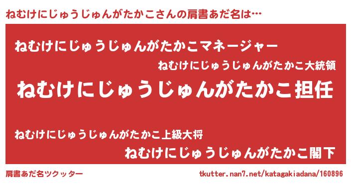 | 可愛いあだ名 | 『ねむけにじゅうじゅんがたかこママ』 |