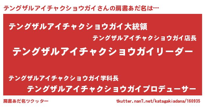 | 意味不明あだ名 | 『とにかく怪しいテングザルアイチャクショウガイ』 |