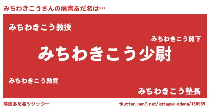 | 男性向けラノベタイトル風あだ名 | 『転生したらみちわきこうだった件』 |