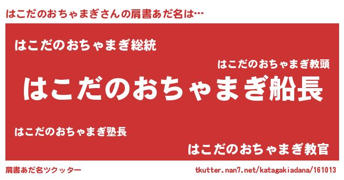 | ヘコむあだ名 | 『はこだのおちゃまぎ(小並感)』『はこっぺ』 |
