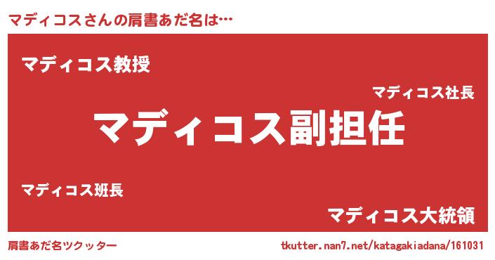| 胡散臭い通販商品みたいなあだ名 | 『絶対に幸福をもたらす水素水…その名も「マディコス」』 |