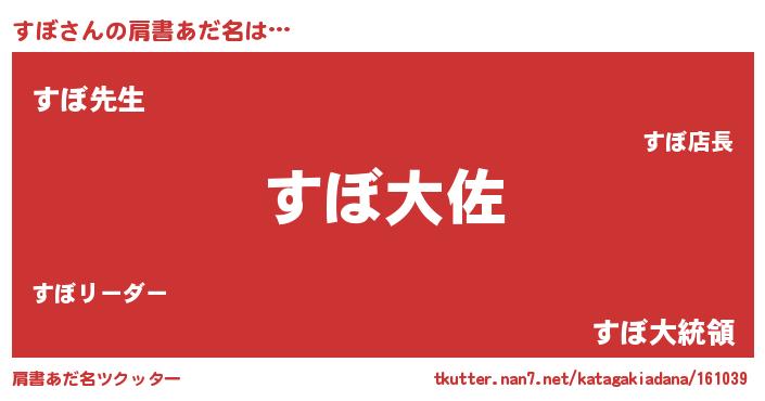| ヒーロー風カッコイイあだ名 | 『ネオスボ』『ウルトラすぼマン』 |