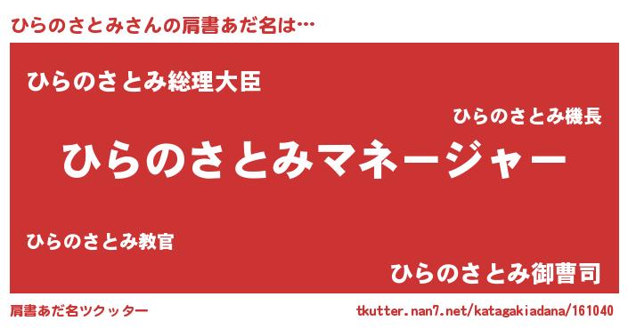 | 男性向けラノベタイトル風あだ名 | 『はたらくひらのさとみさま!』 |