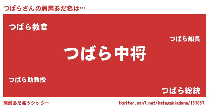 | 男性向けラノベタイトル風あだ名 | 『ツバラスレイヤー』『緋弾のツバラ』 |