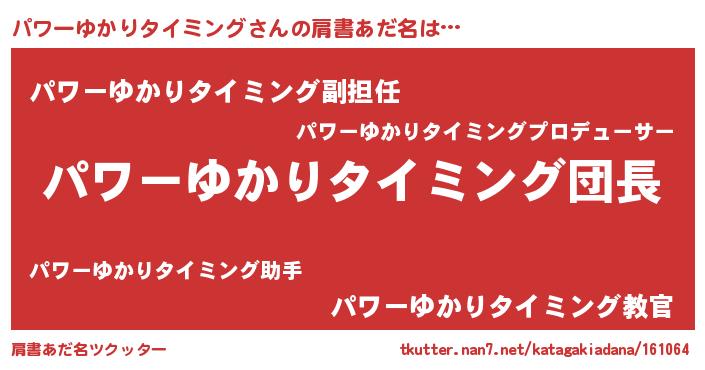 | 胡散臭い通販商品みたいなあだ名 | 『伝統あるサプリメント…その名も「パワーゆかりタイミング」』 |
