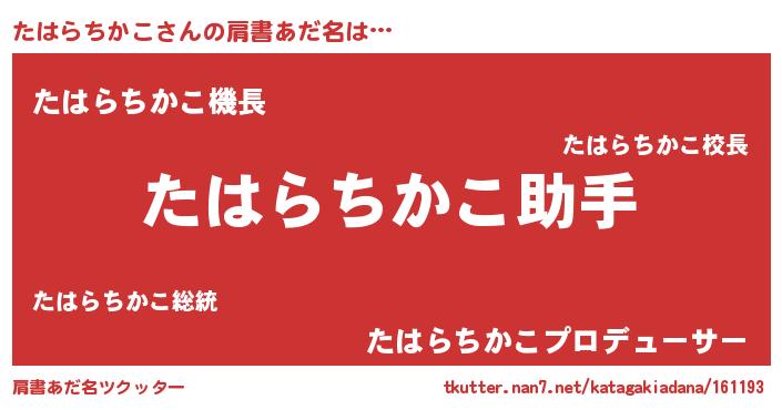| ヘコむあだ名 | 『たはらちかこ(笑)』『たはぷりん』 |