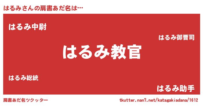 | 男性向けラノベタイトル風あだ名 | 『この素晴らしい世界にはるみを!』 |