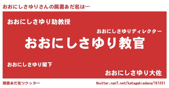 | ヒーロー風カッコイイあだ名 | 『仮面オオダー』『ネオオオニシサユリ』 |