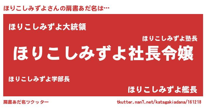 | 男性向けラノベタイトル風あだ名 | 『ほりこしみずよの憂鬱』 |