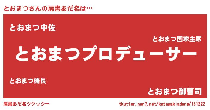 | 欧米人風あだ名 | 『アンジェラ・とおまつ』 |