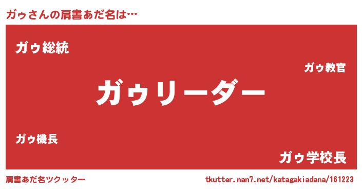 | 自動車の名前っぽいあだ名 | 『ガルトゥパン』『メルガゥス・ガンツ』 |
