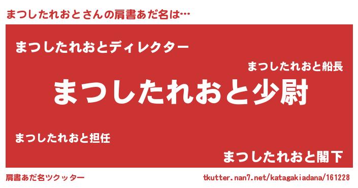 | ヘコむあだ名 | 『まつしたれおと(笑)』『まつっぺ』 |