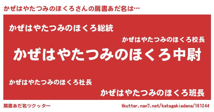 | 伝説のあだ名 | 『孤高の僧侶かぜはやたつみのほくろ』 |