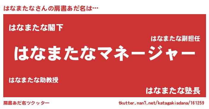 | 意味不明あだ名 | 『自称はなまたな』『永久保存はなまたな』 |