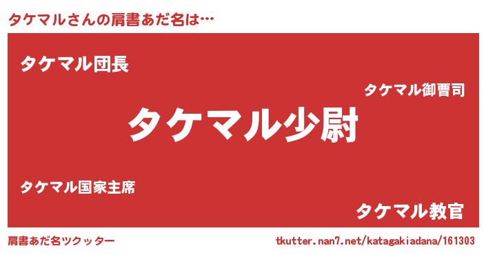 | 欧米人風あだ名 | 『トリンドルタケマル』 |