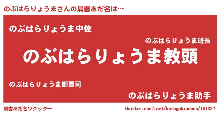 | 男性向けラノベタイトル風あだ名 | 『のぶはらりょうまという概念が存在しない退屈な世界 』 |