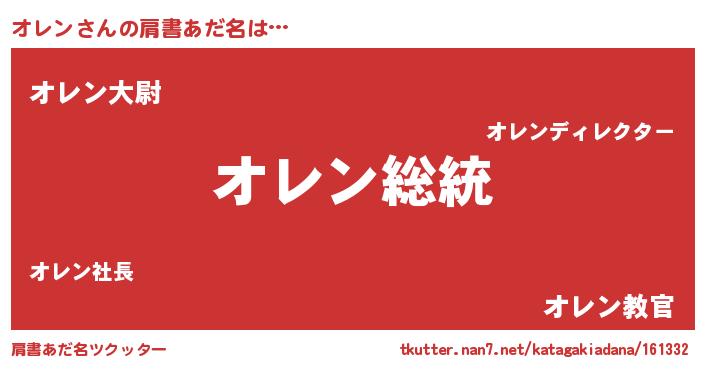 | 男性向けラノベタイトル風あだ名 | 『Re:オレンから始める異世界生活』 |