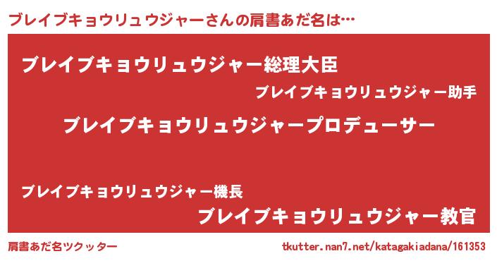 | ファンタジー風あだ名 | 『エターナルブレイブキョウリュウジャーー』 |