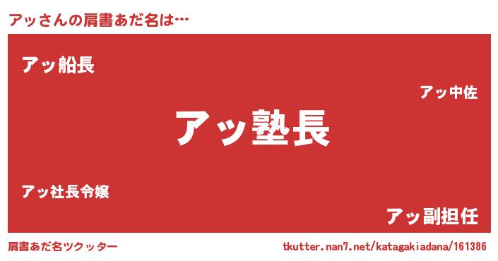 | 女子向けラノベタイトル風あだ名 | 『アッの卵を拾いまして』 |