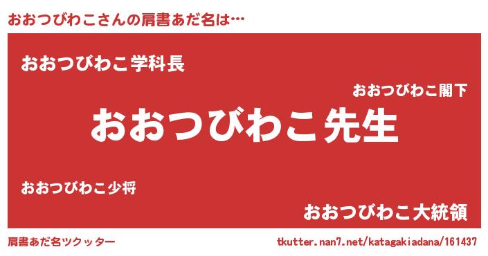 | ヒーロー風カッコイイあだ名 | 『ネオオオツビワコ』『仮面オオダー』 |