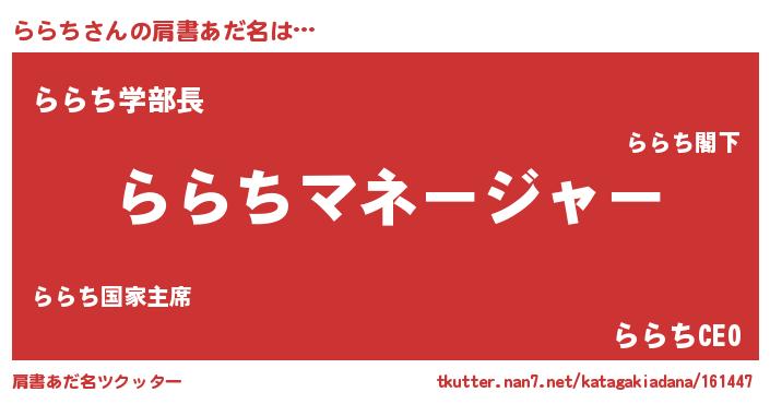 | ヒーロー風カッコイイあだ名 | 『友情の使者ららち』『スーパーララチ』 |