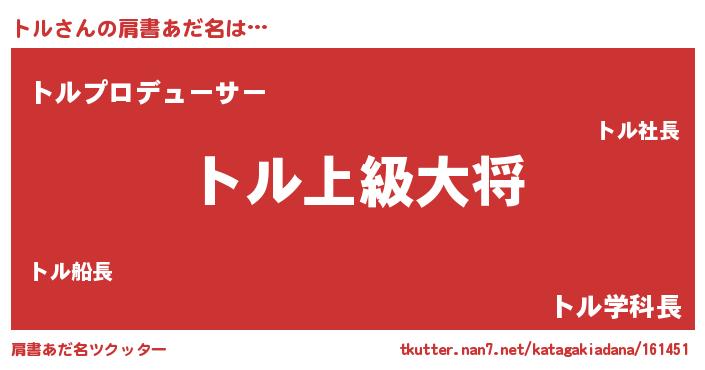 | 欧米人風あだ名 | 『トリンドルトル』『アンジェラ・トル』 |