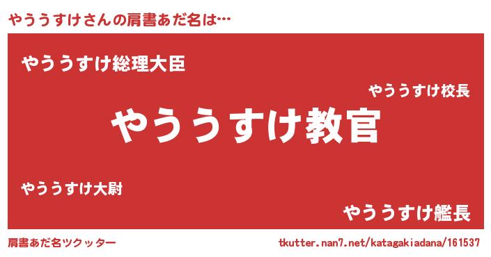 | 男性向けラノベタイトル風あだ名 | 『この素晴らしい世界にやううすけを!』 |