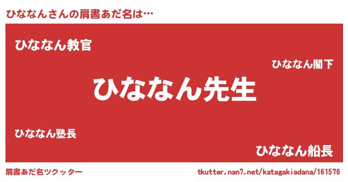 | 男性向けラノベタイトル風あだ名 | 『ひななんという概念が存在しない退屈な世界 』 |