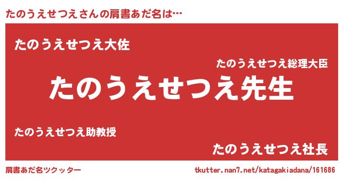 | 男性向けラノベタイトル風あだ名 | 『誰もが恐れるあのたのうえせつえが、ぼくの専属メイドになるようです。』 |