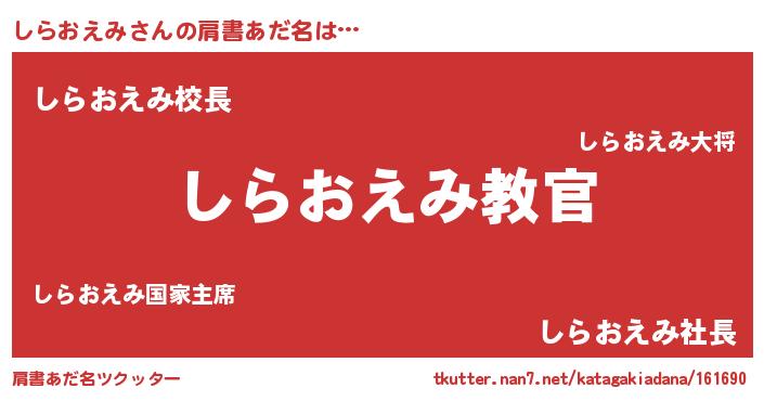 | 男性向けラノベタイトル風あだ名 | 『この素晴らしい世界にしらおえみを!』 |