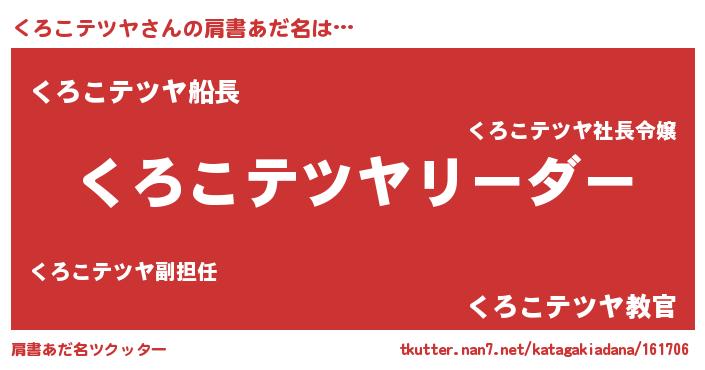 | 男性向けラノベタイトル風あだ名 | 『くろこテツヤの嫁は女の子じゃないと思った?』 |