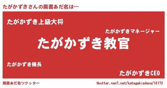 | ヒーロー風カッコイイあだ名 | 『仮面タガダー』『スーパータガカズキ』 |